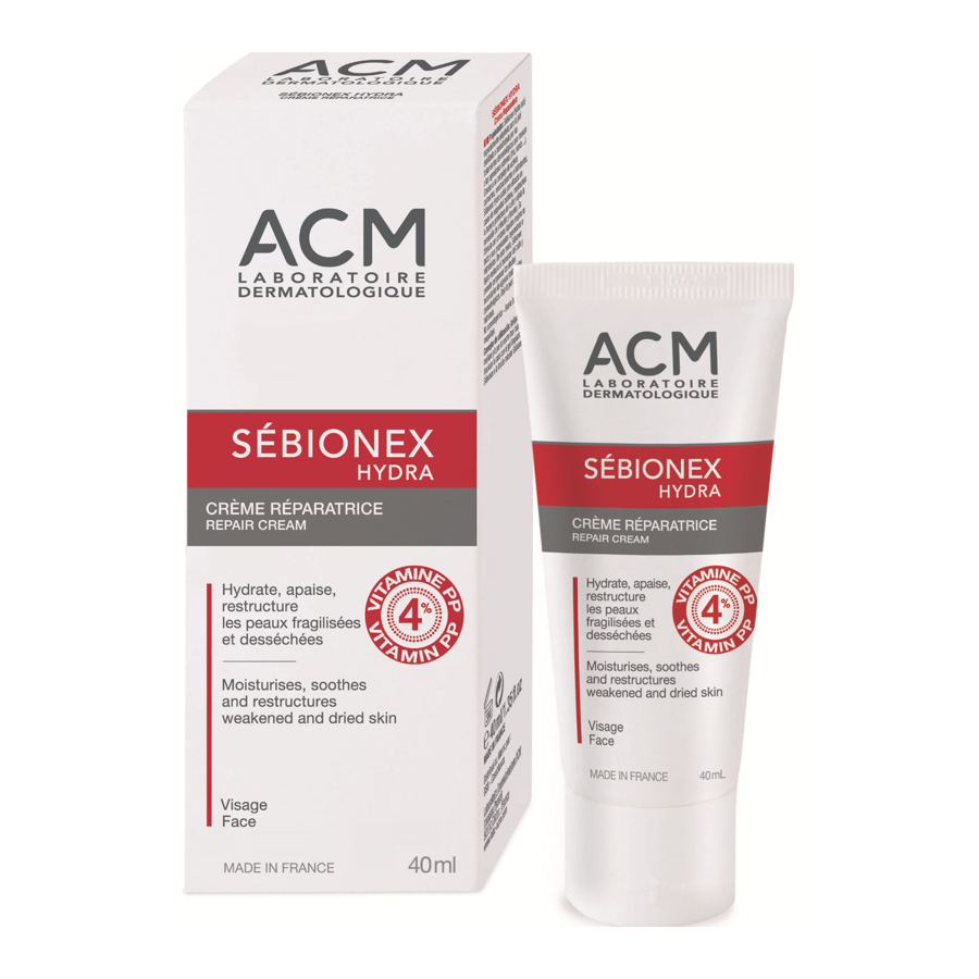 Sebionex HYDRA cremă reparatoare piele fragilizată și uscată, 40ml, ACM acționează eficient asupra uscăciunii cutanate, restructurează bariera cutanată și ameliorează senzațiile de iritație și de piele care strânge