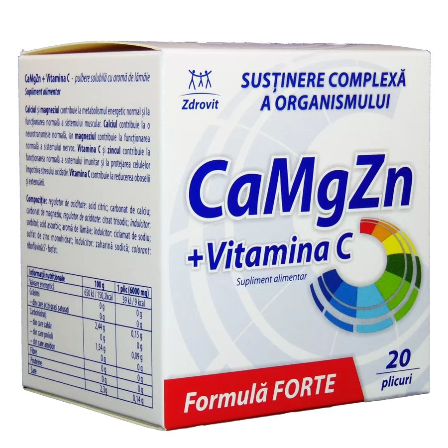 Calciu Magneziu Zinc + Vitamina C 20 plicuri