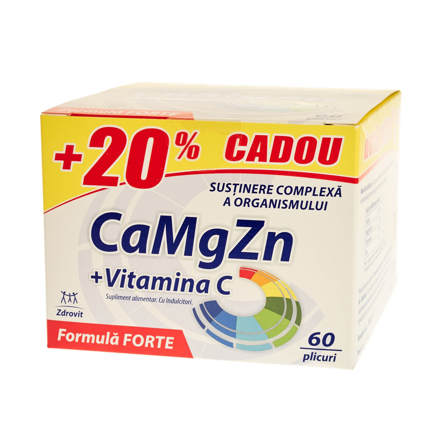 Calciu Magneziu Zinc VitaminaC, FORTE 60plicuri (20% CADOU), Zdrovit