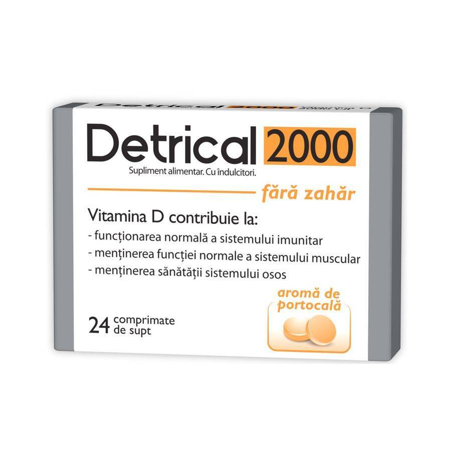 Detrical D3 2000 UI, aroma portocale, fără zahăr, 24 comprimate, Zdrovit