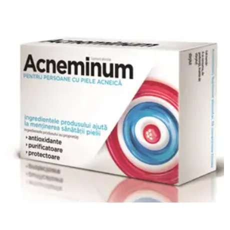 Ingredientele din suplimentul alimentar Acneminum contribuie la mentinerea sanatatii pielii. Este indicat persoanelor cu piele acneica