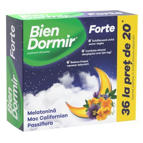 Ingrediente: lactoza monohidrat, extract de passiflora, extract de mac californian, melatonina, antiaglomeranti (talc, stearat de magneziu).