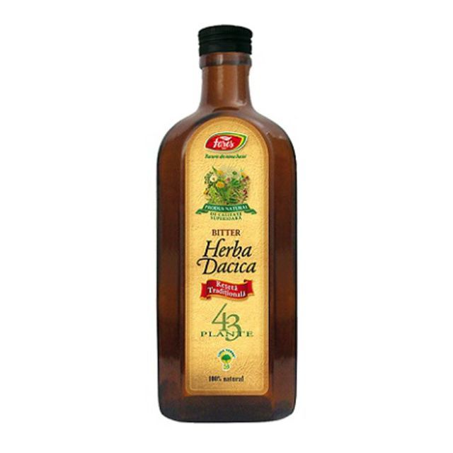 Bitter Herba dacica D94, 250 ml, Fares tonic aperitiv, stimulent digestiv, drenor hepato-biliar, depurativ, diuretic, laxativ, antiparazitar, hipocolesterolemiant, calmant cardiac, febrifug, dezinfectant, cicatrizant, epitelizant.