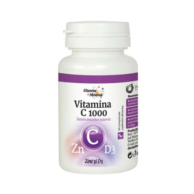 Vitamina C1000 cu Zinc si D3, 60 comprimate, Dacia Plant